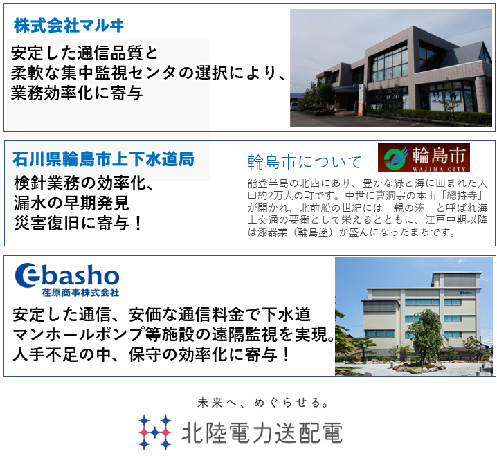 当社は、IoT用通信回線提供を通じて、以下のように北陸地域のIoT化を推進し、「地域の皆さまの更なる利便性向上」、「より安全・安心な地域」を目指してまいります。
