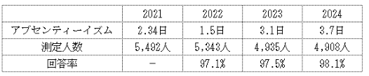 [2022以降] 従業員アンケートで,昨年1年間に自分の病気で何日仕事を休んだか聴取した結果の全従業員平均
