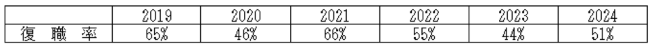 ※復職率:当該年度中の休務者が年度内に復職した比率