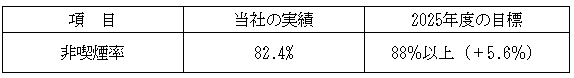 健康課題の解決に向け,2025年度の目標として非喫煙率88%以上等を掲げ,従業員のヘルスリテラシーの向上,健康診断有所見者の減少を目指します。