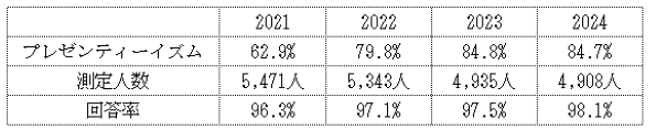 [2023以降] SPQの絶対的プレゼンティーズム(0~100%)を用いた従業員調査を実施。実績値は全従業員平均