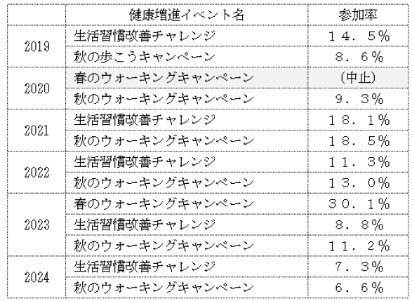 毎年度の健康保持増進施策の実施結果を検証し,新たな受動喫煙対策の導入(2025年4月から敷地内全面禁煙かつ就業時間中禁煙)や各施策の参加率向上のためのイベント実施方法のリニューアル等の見直しに努めています。